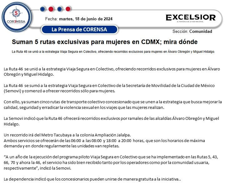 Rutas para mujeresEsteban Flores18 jun 20241 Min. de lecturaLa Ruta 46 se unió a la estrategia Viaja Segura en Colectivo, ofreciendo recorridos exclusivos para mujeres en Álvaro Obregón y Miguel Hidalgo.